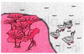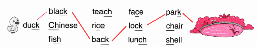 读一读,将画线字母或字母组合发音相同的单词连起来,帮助小鸭子找到池塘。