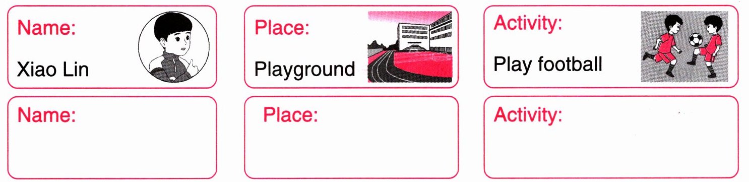 | Name: | Xiao Mei | Place: | Community Center | Activity: | Read books |