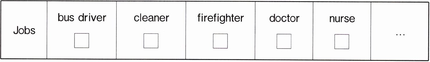 三 ☆ 小调查:你生活的社区有哪些工作人员? 打 “√” 完成表格,然后试着介绍。