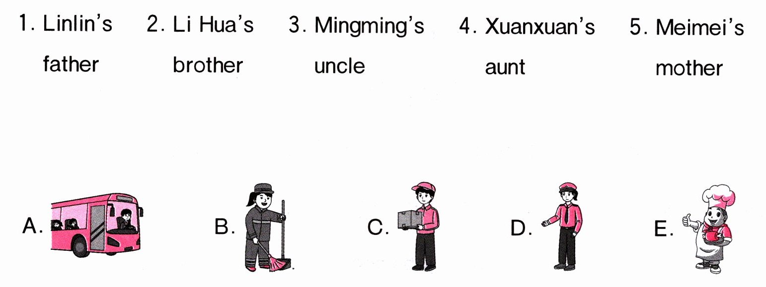 □ A. doctor □ B. bus driver □ C. delivery worker □ D. cook