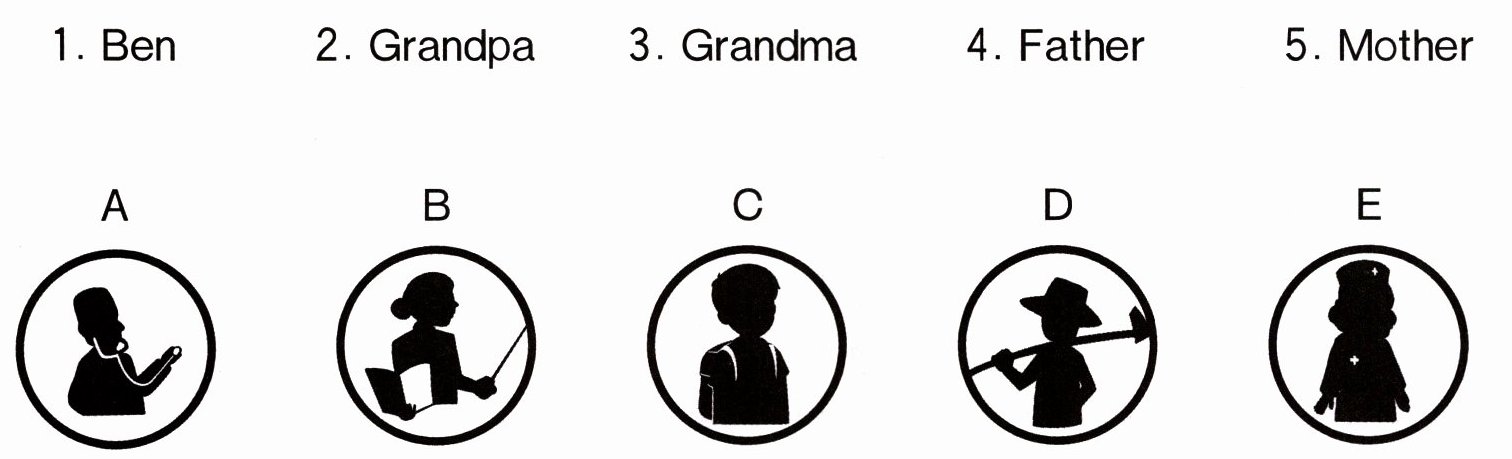 My name is Ben. I am a student. This is my grandpa. He is a farmer. He can drive a van. This is my grandma. She is a teacher. She teaches Chinese. This is my father. He is a vet. He works in a pet hospital. He makes sick pets healthy. This is my mother. She's a nurse. She's very nice.