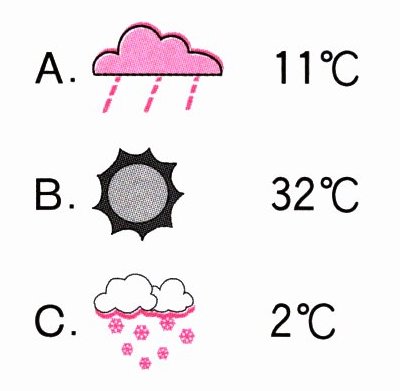 三 ☆ 来自不同地区的同学们分别记录了所在地区七月同一天的天气状况。 观察表格,完成任务。