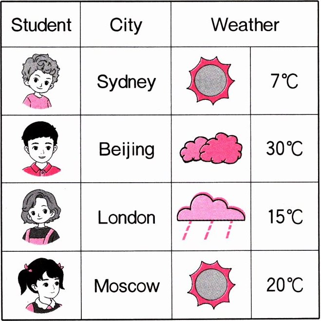 )4. It is sunny in Moscow.任务二:根据表格,选择正确答案。