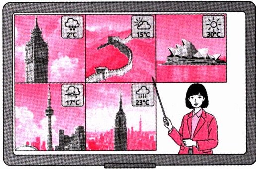 二 我们可以通过多种媒体获取天气情况。 看图识天气,选一选。