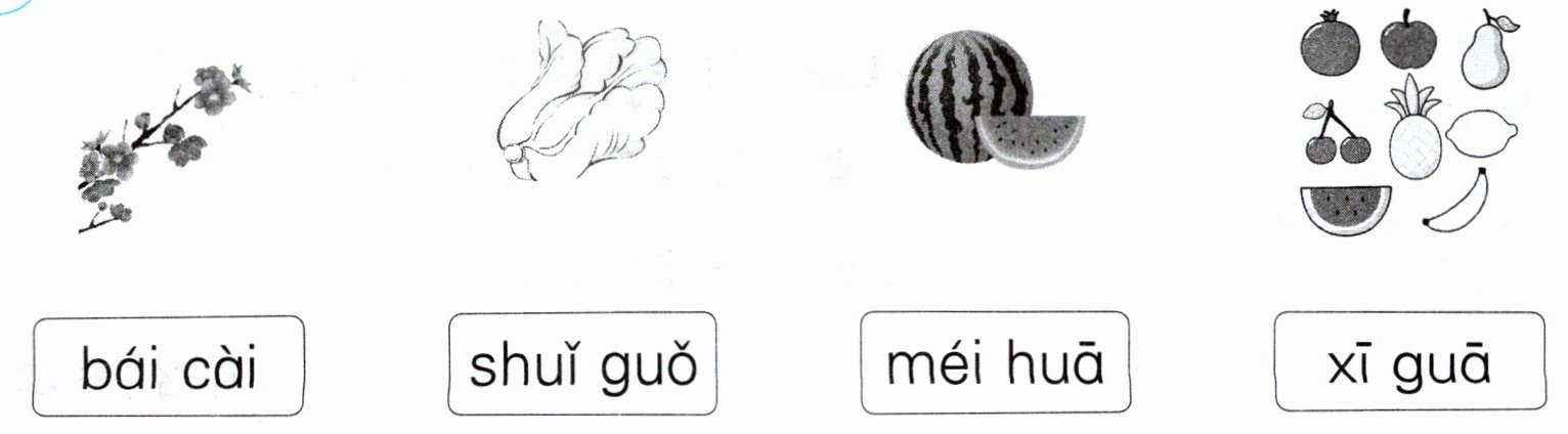 bái cài shuǐ guǒ méi huā xī guā