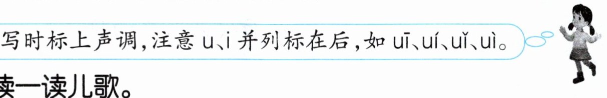 写时标上声调,注意u、i并列标在后,如uī、uí、uǐ、uì。