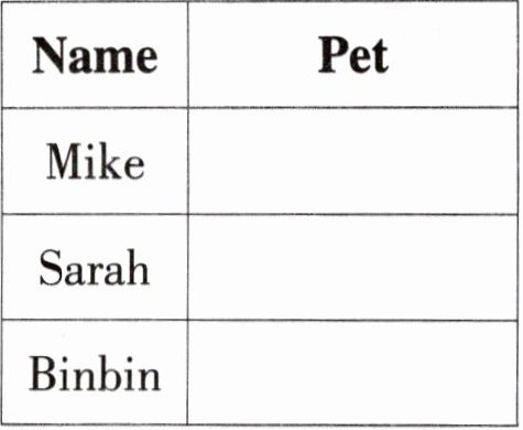 Ⅱ.Read and choose.(读对话,选出同学们喜欢的宠物,将序号填在表格里。)