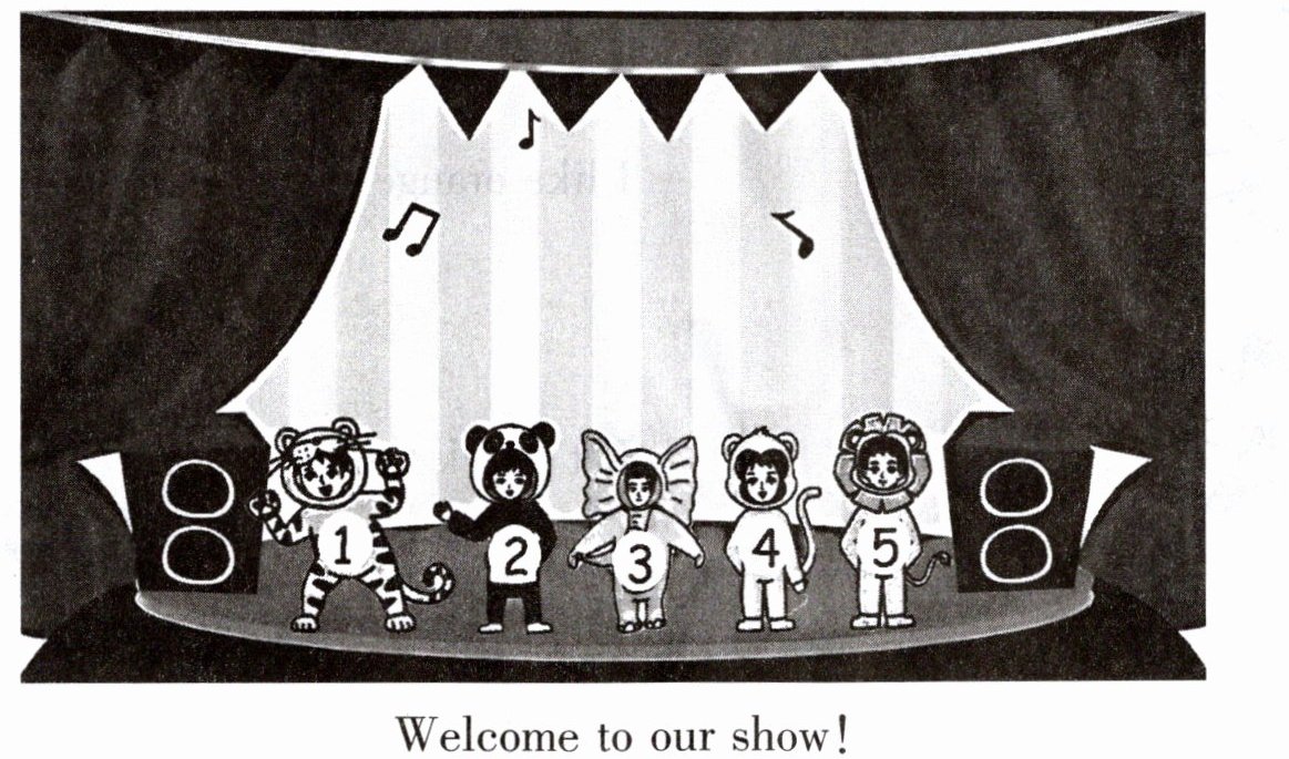 Ⅰ. Look, read and choose. (看图,读句子,选择小朋友们扮演的动物名称,将序号写在横线上。)