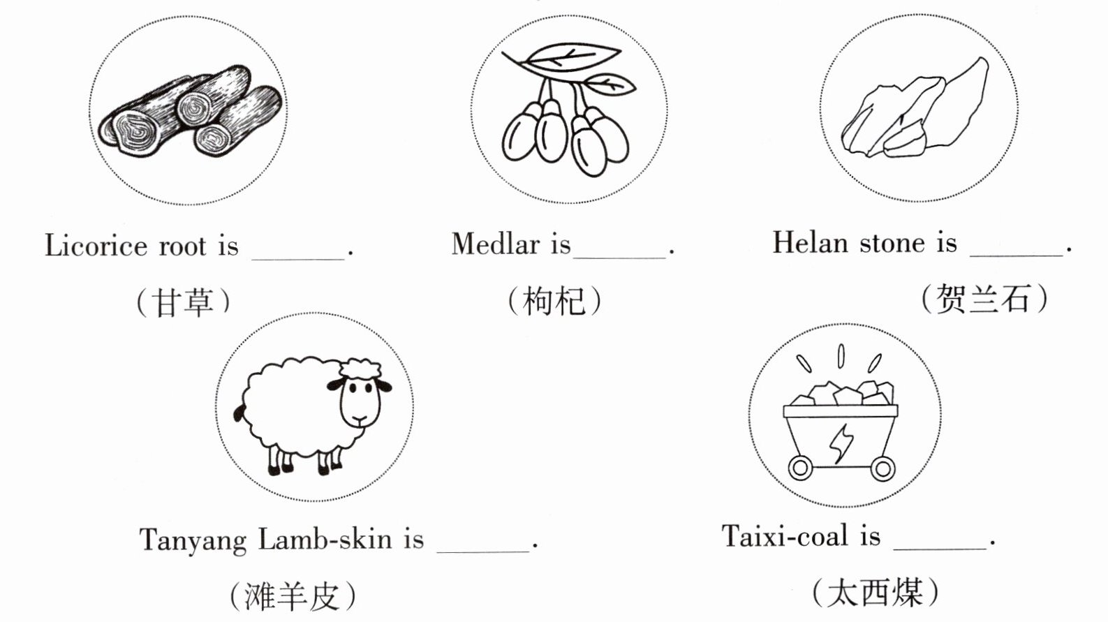 Ⅰ. Choose and colour. (给"宁夏五宝"涂色,并了解更多的相关知识。)