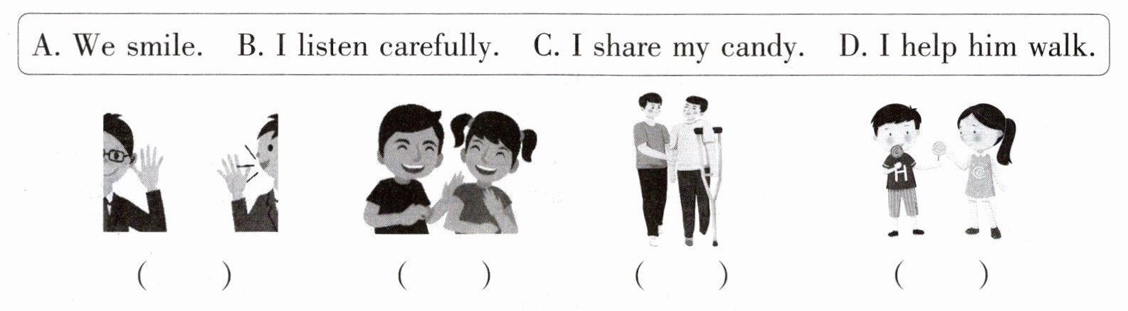 D. Friends help. E. Friends smile.