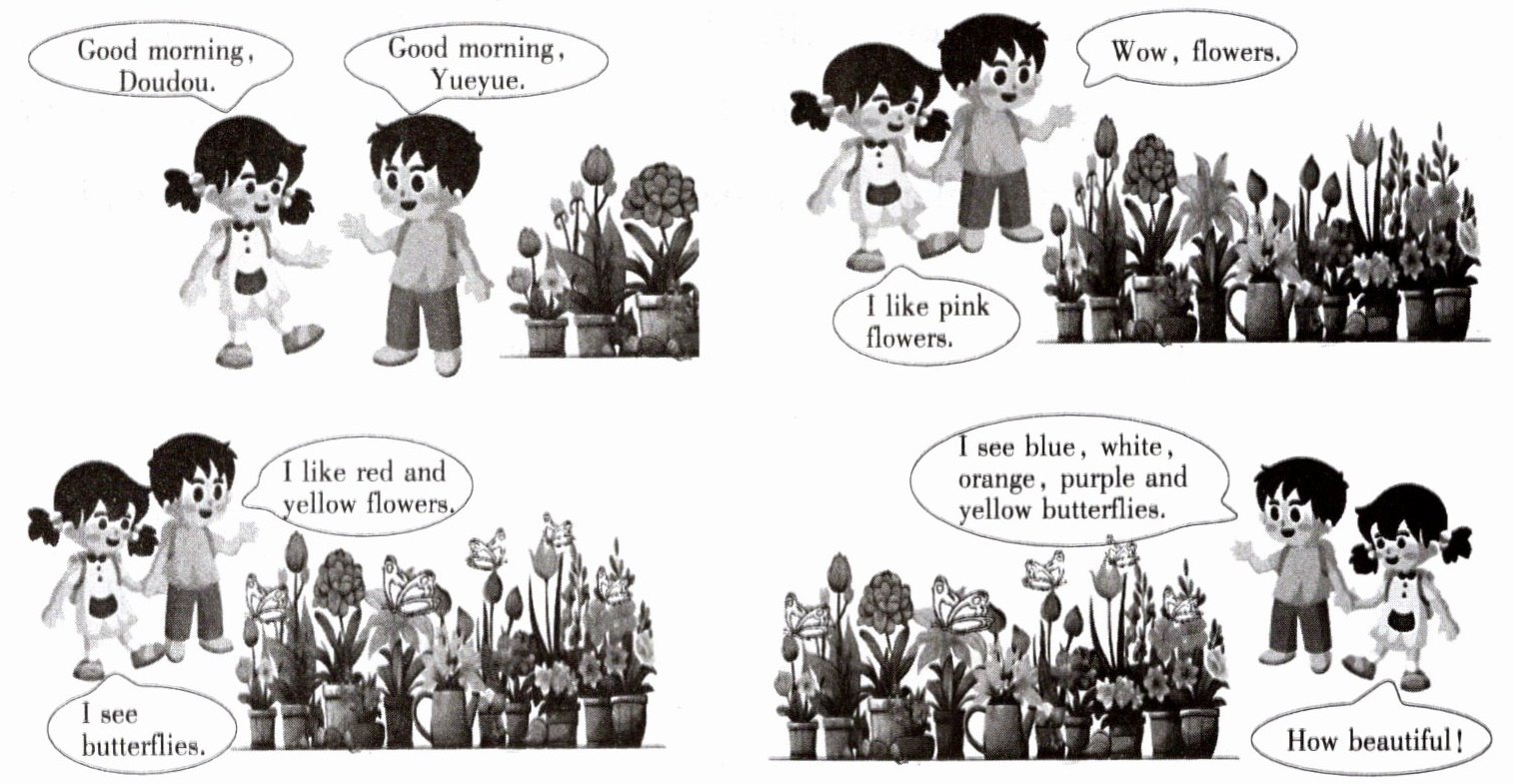 ) 1. Doudou likes ______ flowers.A. red and yellow