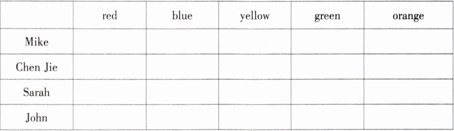 Ⅲ. Read and tick.(读对话,在每个人喜欢的颜色下面画“√”。)