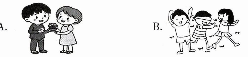 Ⅱ. Listen and choose. (听对话,选出与对话内容相符的图片,将序号填在括号里。)