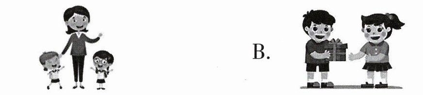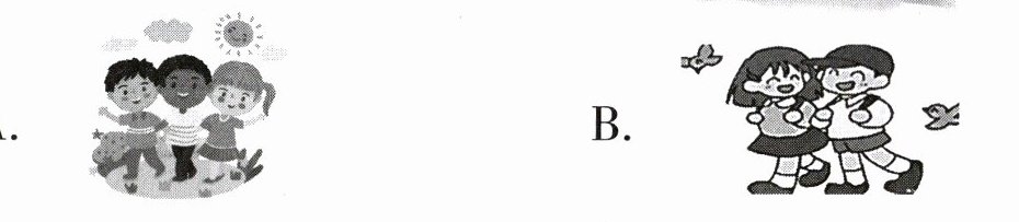 Ⅱ. Listen and choose. (听对话,选出与对话内容相符的图片,将序号填在括号里。)