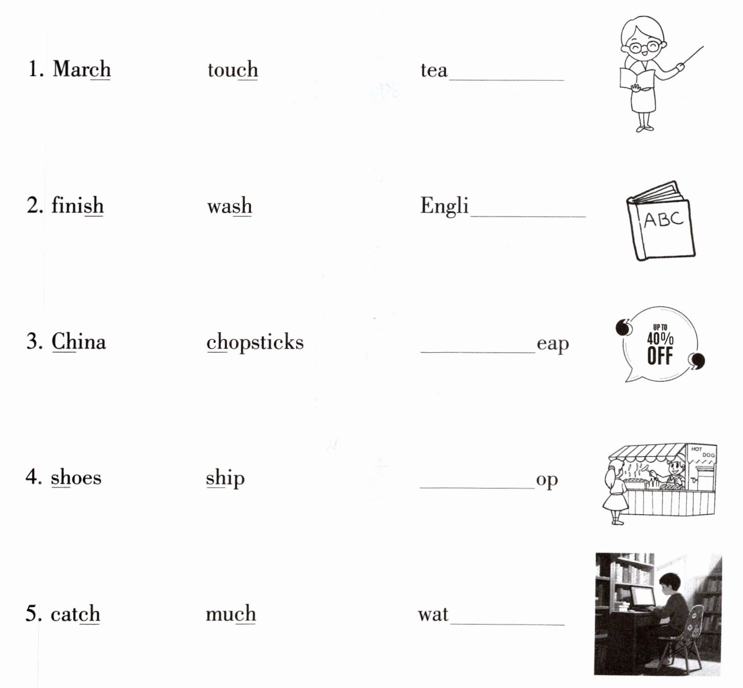 Ⅱ. Read the words and fill in the missing letters. (读单词并补全缺失的字母。)
