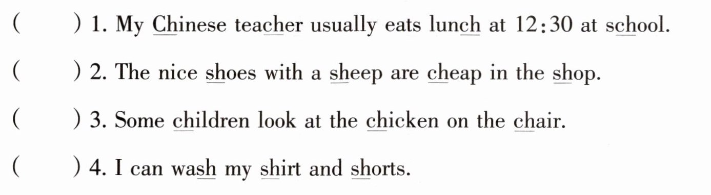Ⅰ. Read and judge. (读句子,判断单词画线部分的发音是"√"否"×"相同。)