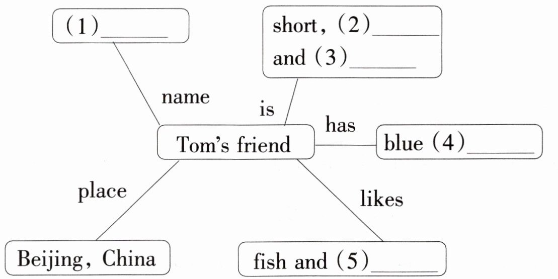 Hello, my name is Tom. I'm a pupil. I'm from the USA. I have a good friend. He is from Beijing, China. His name is Zhou Jia. He is short but very strong. He often helps me, and he is very friendly. He has blue glasses. He likes fish, but I don't. We both(都) like oranges.