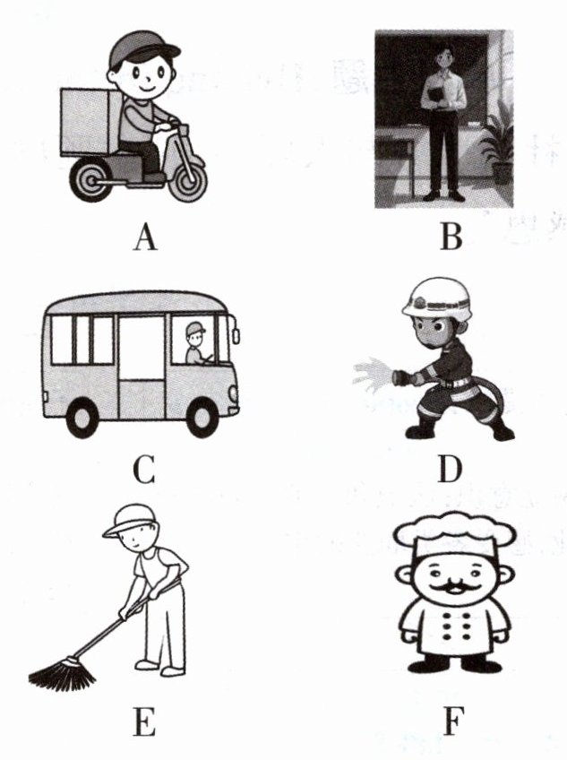 Ⅰ. Read and choose. (请为图片中的人物选择合适的介绍语,将序号填在括号里。)
