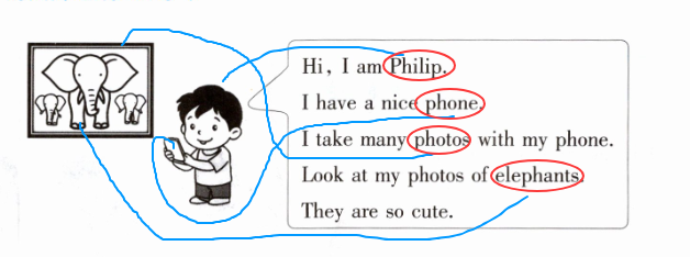Ⅰ. Read and circle. (读小故事,圈出含有字母组合 ph 的单词,并将单词和左边的图片连线匹配。)