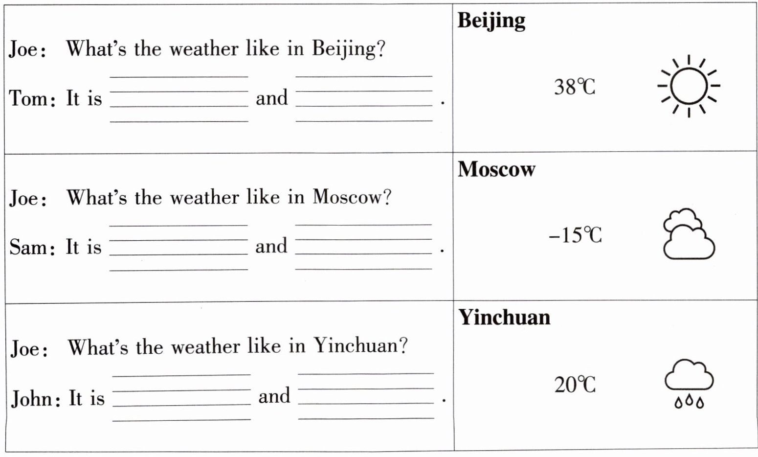 Ⅱ. Look and write. (根据图片内容在四线三格上书写单词,补全对话。)