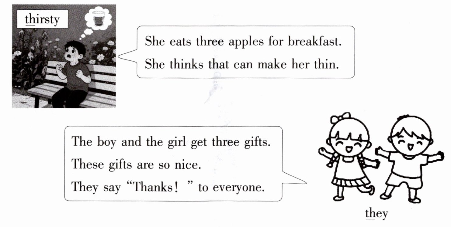 1. thirsty 2. thin 3. Thank; these
