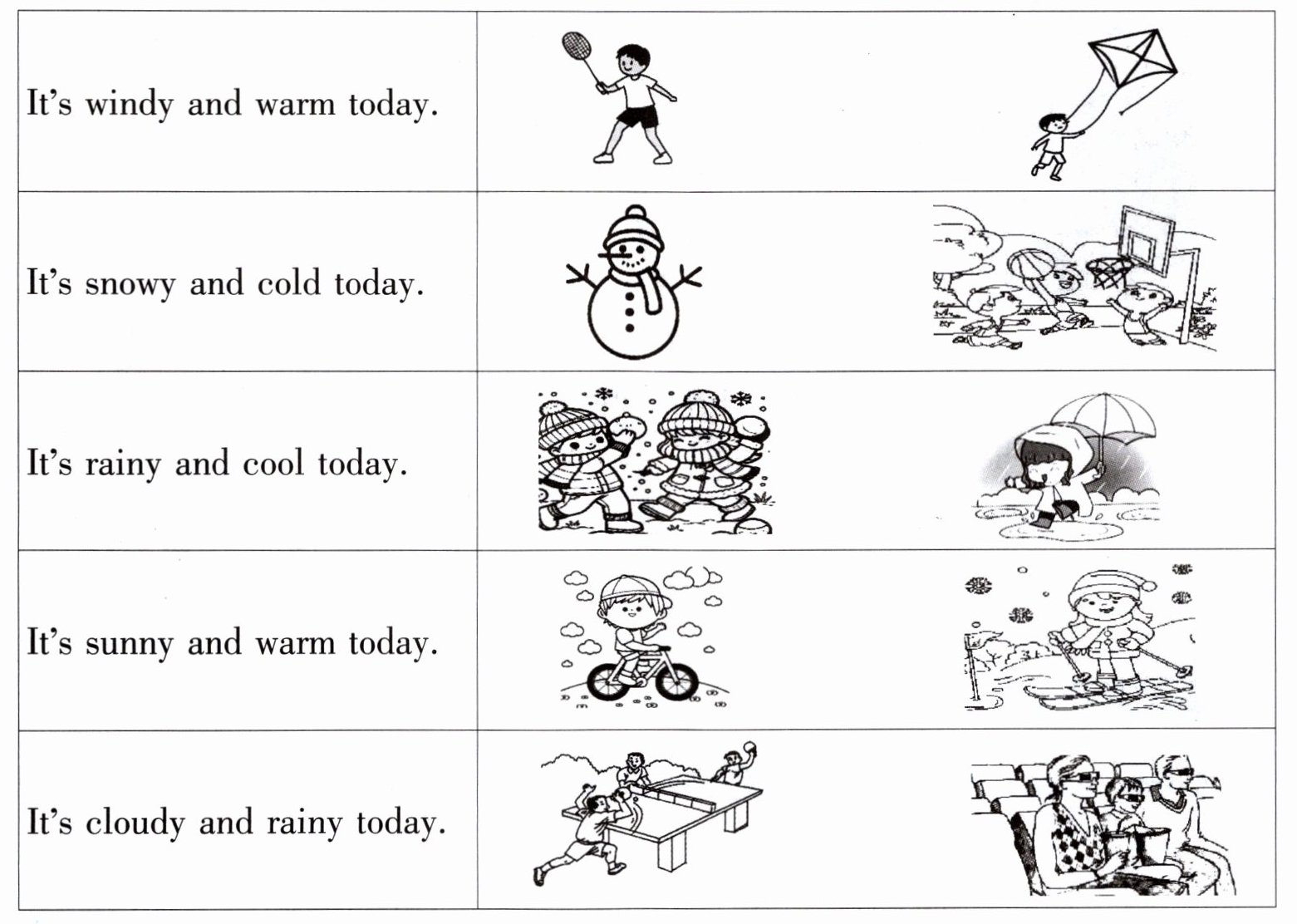Ⅰ. Look and choose.(读句子,圈出与天气情况相符合的活动图片。)