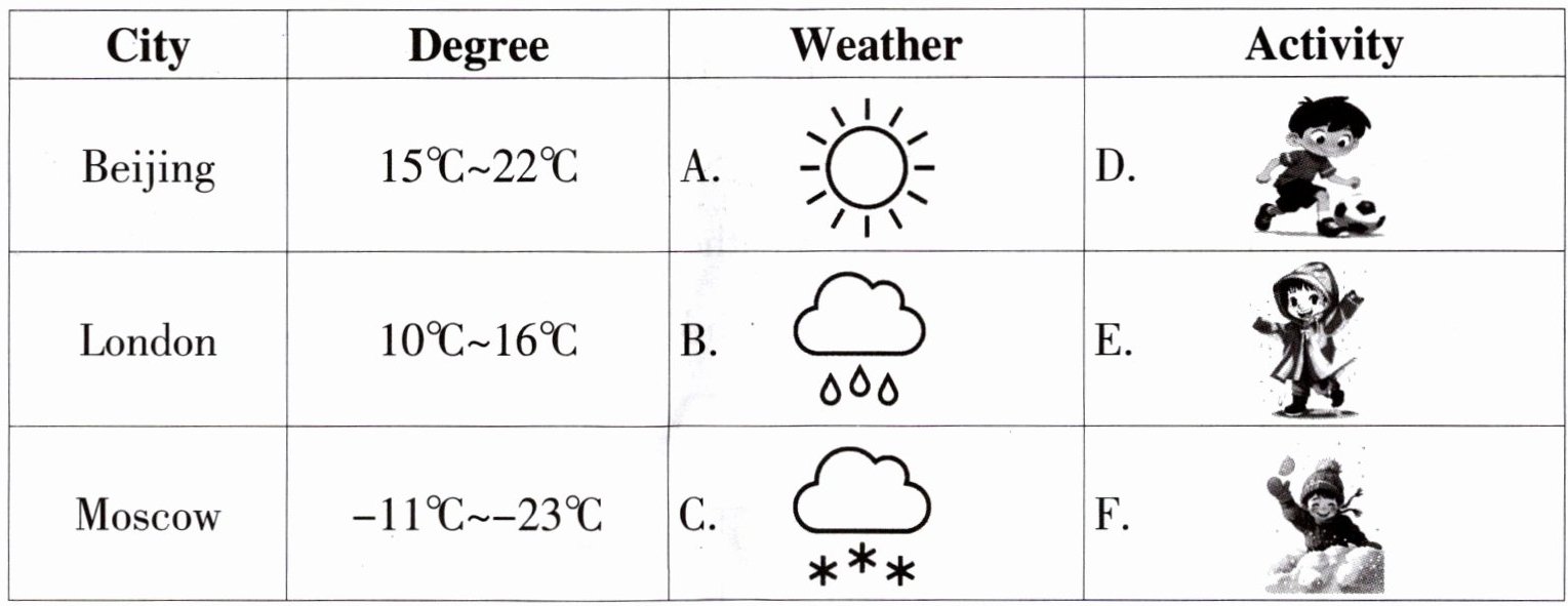 Ⅰ. Look and choose.(根据表格信息,选择与对话内容相符的图片。)