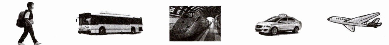 1. by bus 2. by taxi 3. on foot 4. by bike