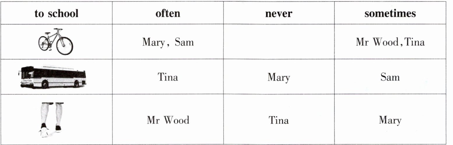 ) 4. Mr Wood never rides a bike to school.(