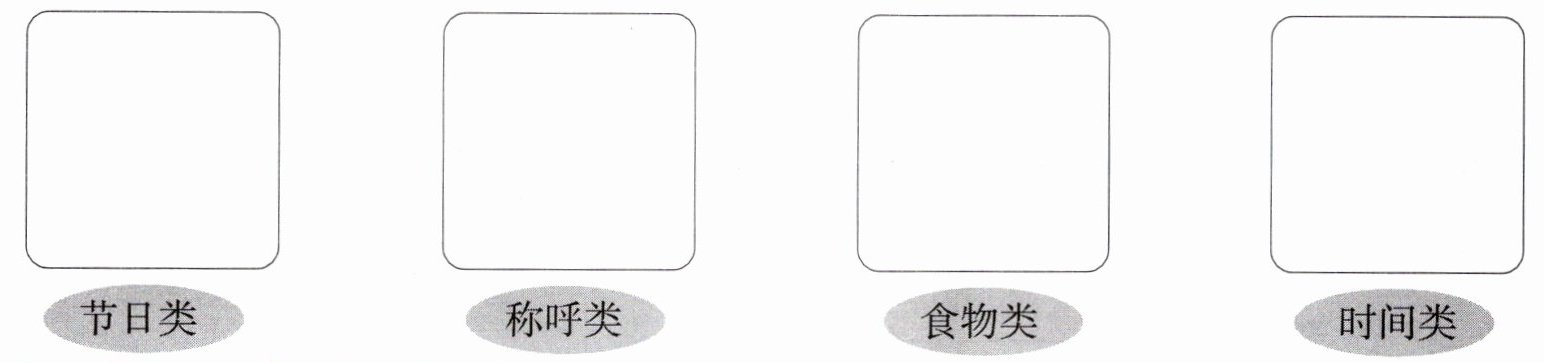 Ⅰ. 按照要求将单词分类,并将序号填入方框中。