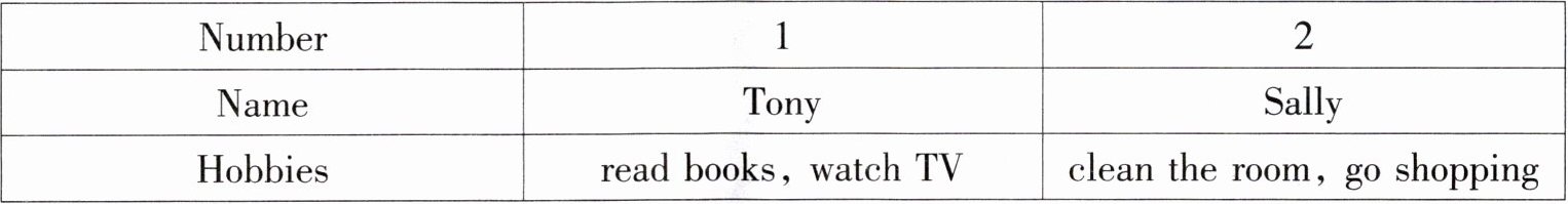 | Hobbies | read books, watch TV | clean the room, go shopping |