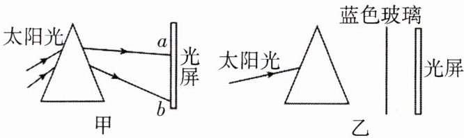 (3)图乙中,在三棱镜和白色光屏之间放一块与光屏等大的蓝色玻璃,白色光屏上呈现的光的颜色为