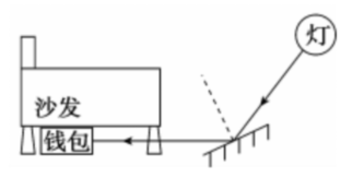 8. 钱包掉到沙发下,没有手电筒,小明借助平面镜反射灯光找到了钱包。图中已标出了反射光线与入射光线,请在图中确定平面镜的位置,并画出法线。