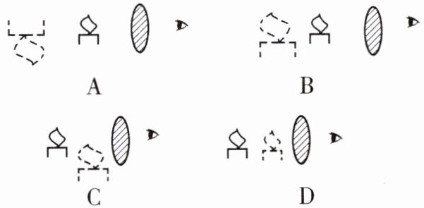 9. 在研究凸透镜成像实验中,当烛焰离凸透镜的距离小于焦距时,眼睛通过透镜观察到的虚像可能是(