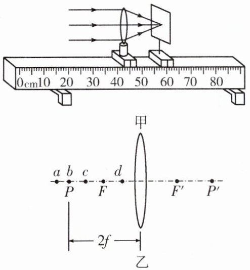(2)如图乙所示,若在光屏上(光屏未画出)能得到清晰放大的烛焰实像,则蜡烛可能置于透镜左边a、b、c、d四点中的