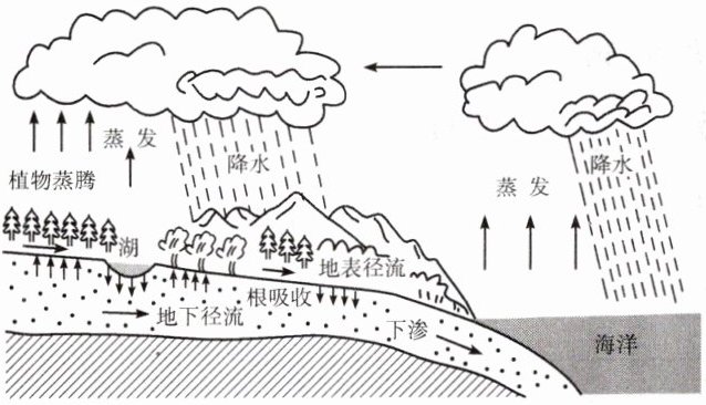 江、河、湖、海以及大地表层中的水不断蒸发变成水蒸气。当含有很多水蒸气的空气升入高空时,水蒸气的温度降低凝成小水滴或凝成小冰晶,它们被上升的气流托起,这就形成了云。在一定条件下,云中的小水滴不断变成水蒸气再凝华到小冰晶上,有的小水滴也会变成小冰晶,云中的小水滴和小冰晶越来越大,就会下落。在下落过程中,如果温度低于或接近 $0^{\circ}C$,就形成雪。如果温度高于 $0^{\circ}C$,小冰晶又变成小水滴,与原来的水滴一起落到地面,这就形成了雨。