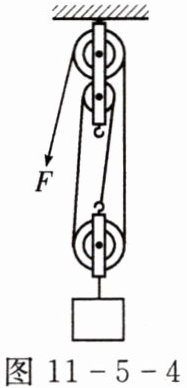 解:$F=\frac 13(G+G_{动})=\frac 13×(12\ \text {N}+3\ \text {N})=5\ \text {N}$