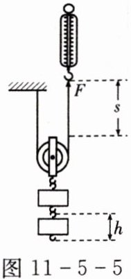 12. 如图11-5-5所示,用手通过一个弹簧测力计,沿竖直方向匀速拉一个动滑轮,使挂在动滑轮下的钩码缓慢上升。