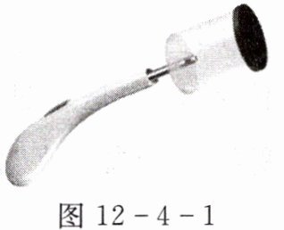 1. 如图12-4-1所示,在透明塑料盒的底部钻一个孔,将电子式火花发生器的放电针管紧紧地塞进孔中,打开塑料盒盖,向盒中滴入数滴酒精,再将盒盖盖紧,然后按动电火花发生器的按钮。这时我们可以看到:盒盖