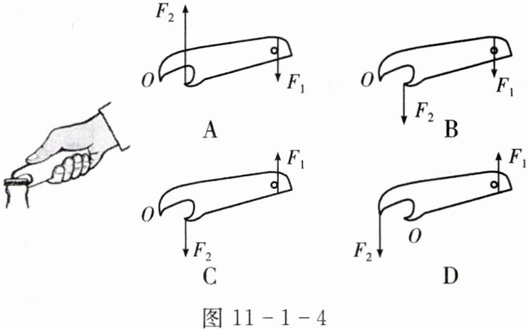 8. 如图11-1-4所示,图中能正确表示开瓶盖时杠杆的支点、动力和阻力的是(