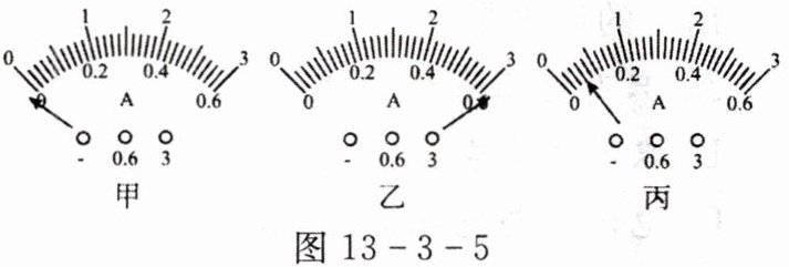 11. 使用电流表时,若不能估计被测电流的大小,通常要进行试触。在试触过程中如果出现如图所示的情况,试分析这种现象发生的原因。