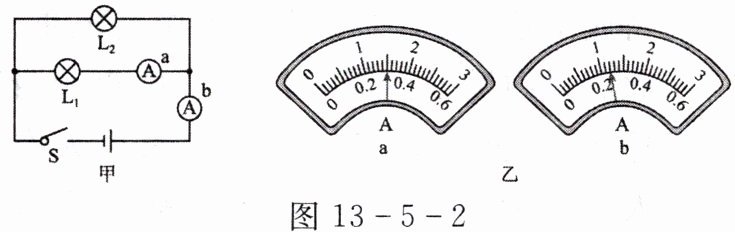 2. 如甲所示电路,当开关S闭合后,电流表的指针偏转如图乙所示,其中a电流表测量的是通过