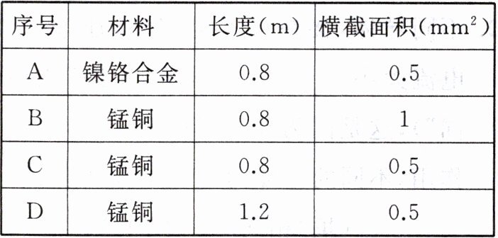 (1)要探究导体的电阻与导体的材料关系应选择的两段导体是