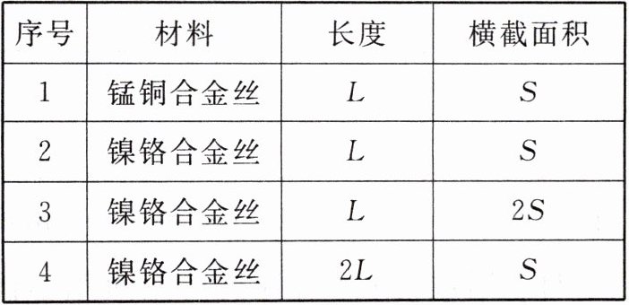 13. 下表是某实验小组在“探究导体电阻大小与哪些因素有关”的实验中,记录所用导体的相关的物理量: