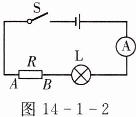 12. 小明设计了如图14-1-2所示的电路图,做“探究导体电阻大小与导体长度的关系”的实验,在A、B间接入下表中待研究的电阻丝,电源电压U恒定,忽略温度对灯丝电阻的影响(电阻丝用电阻符号表示):