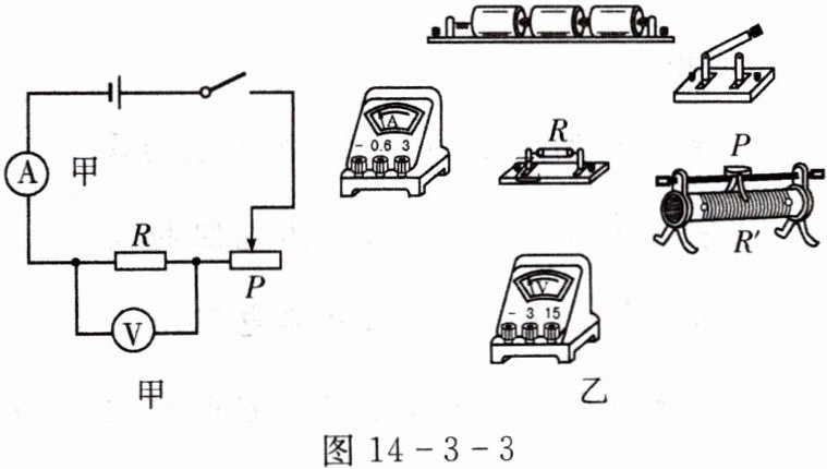 (1)请你根据图14-3-3甲实验电路图,用笔画线代替导线将乙图的实物电路连接完整(连线不能相交)。