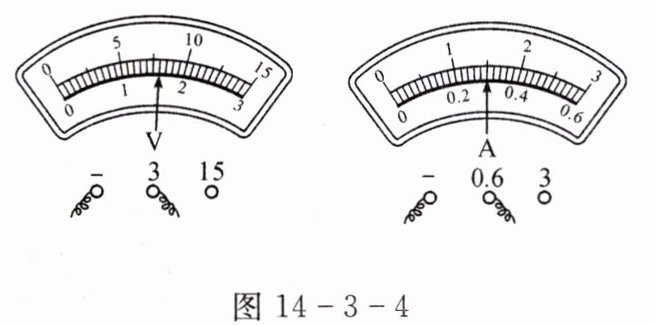 (4)乙同学移动滑片到某一位置时,电压表和电流表的示数分别如图14-3-4所示,请你帮他读出电压表的示数为______V,电流表的示数为______A。