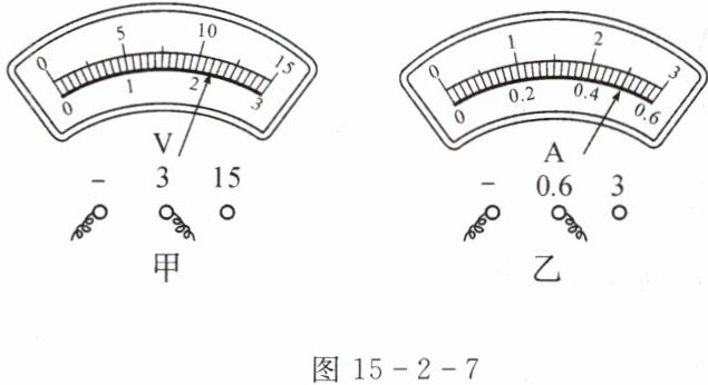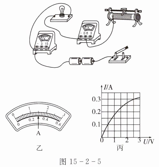 10. 在如图15-2-5所示“测量小灯泡电功率”的实验中,小灯泡的额定电压为2.5 V,滑动变阻器上标有“10$\Omega$ 1 A”的字样。