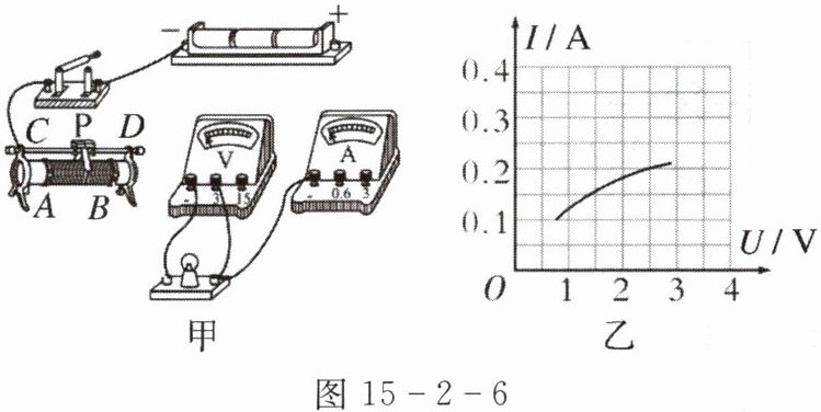 ②由图乙可知,I - U图像斜率逐渐变小,根据$P = UI$,电压增大时,电流也增大,且电压增大得更快,所以实际功率增大。
