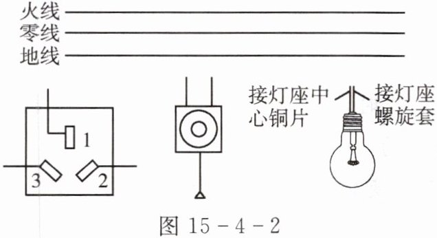 13. 用笔画线代替导线,把图15-4-2的三孔插座、电灯及控制电灯的开关接到家庭电路上。